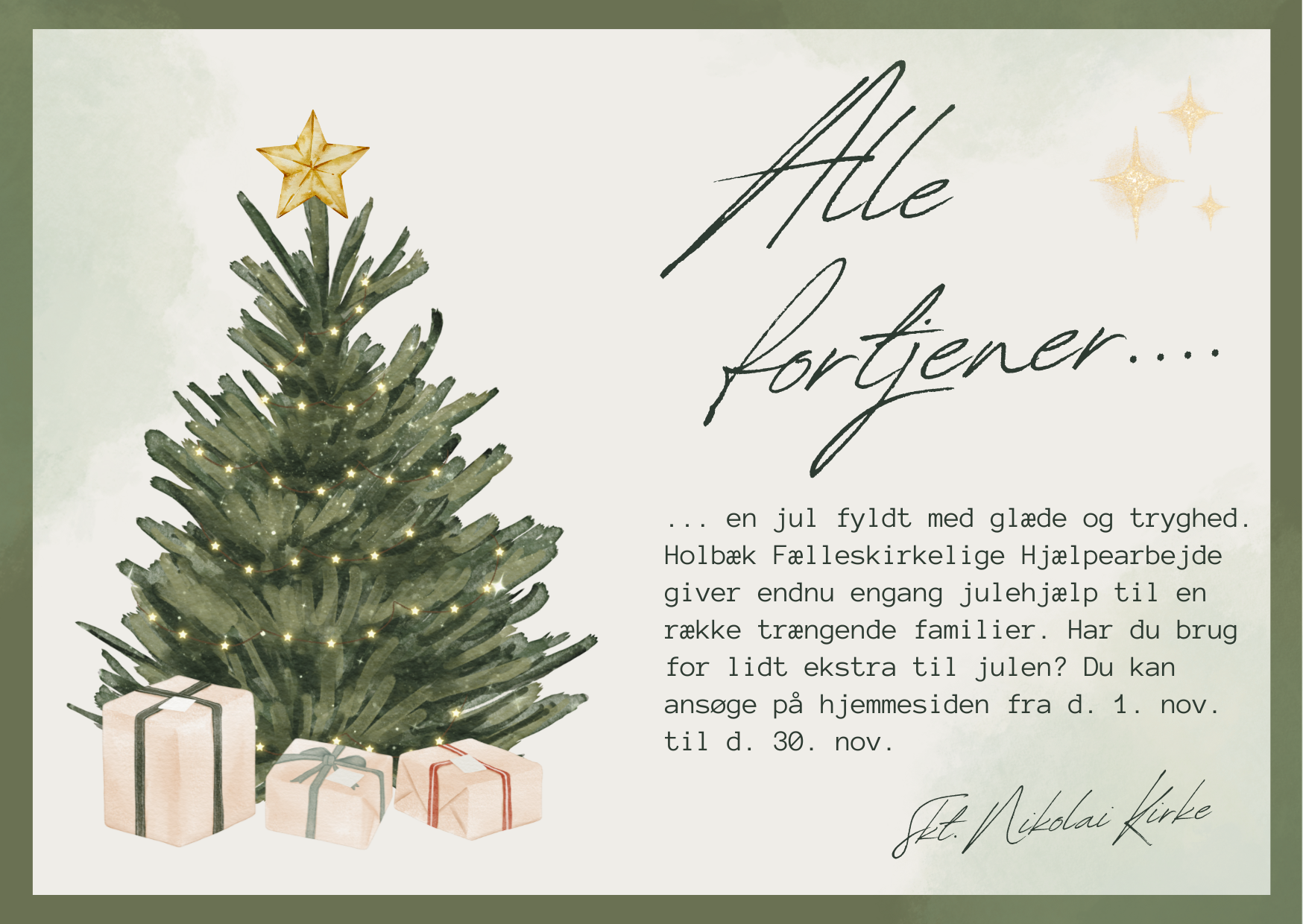 Der kan doneres direkte til Holbæk Fælleskirkelige Hjælpearbejdes Mobilepay: 58 40 38. Alle donationer til dette nummer går direkte til Julehjælpen 2025.