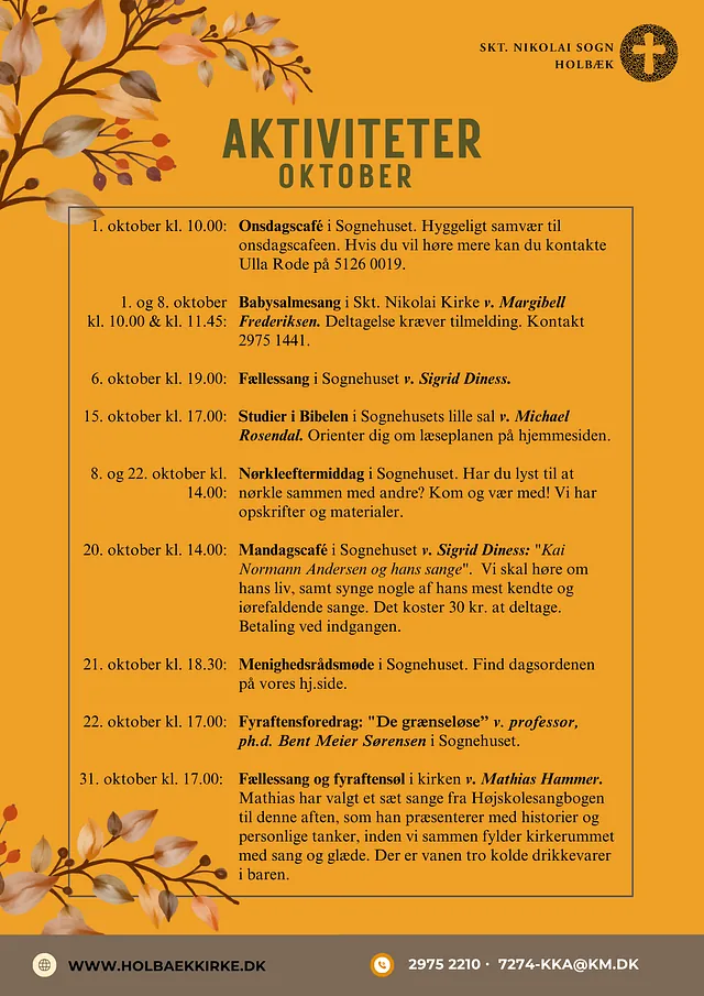 Hvad har vi på plakaten denne måned? En helt masse gode aktiviteter og gudstjenester !