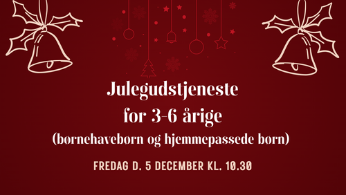 Vi holder en julegudstjeneste for alle børn fra 3 til 6 års alderen. Der vil være sange, fortælling og udklædning. Alle børnehave- og hjemmepassede børn og deres voksne er velkomne!